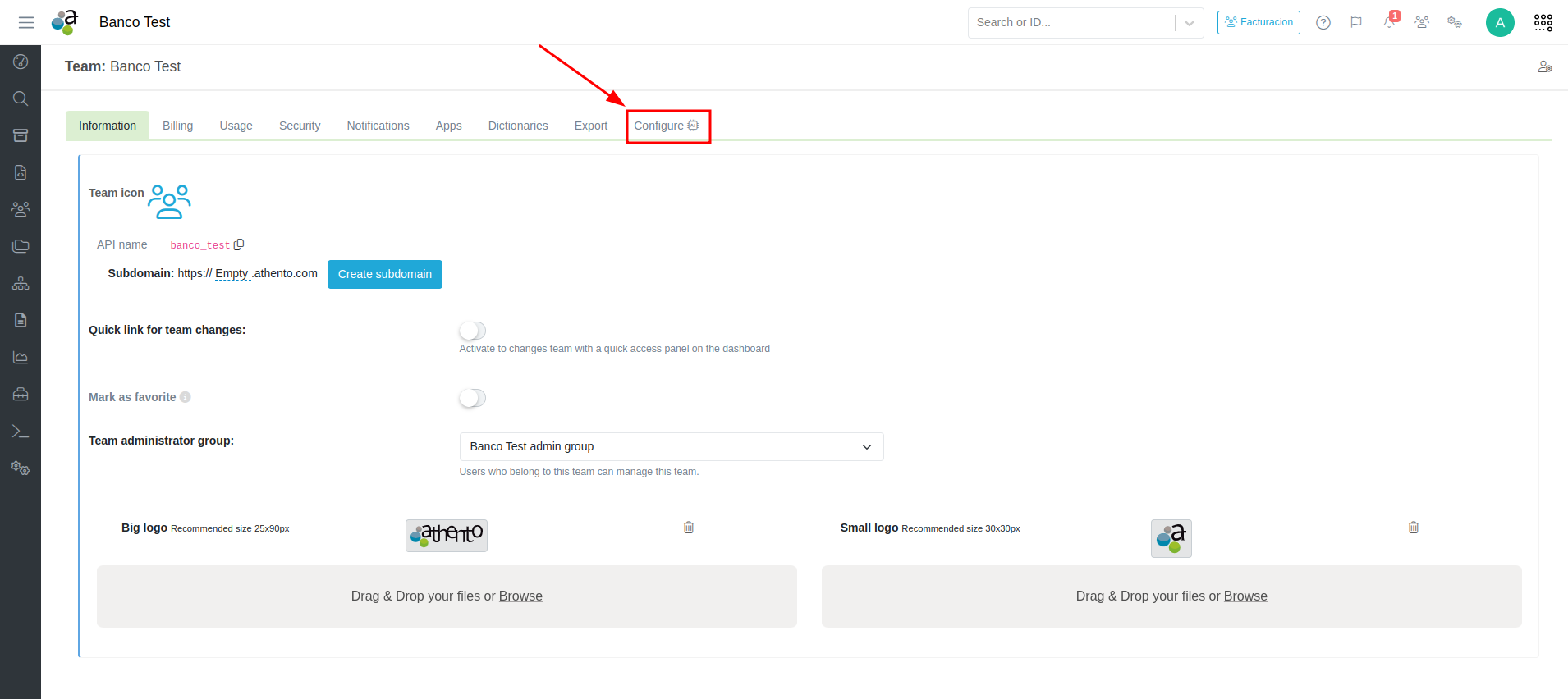 In this view, we will see two distinct sections, one for conversation with Athenea and another for configuration.