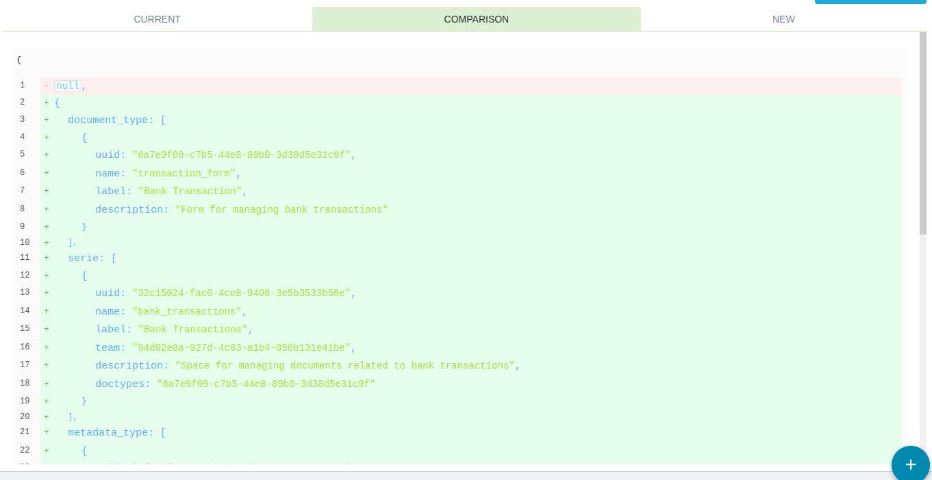 - Comparison: comparison of the equipment's current configuration and the new configuration generated by Athenea.