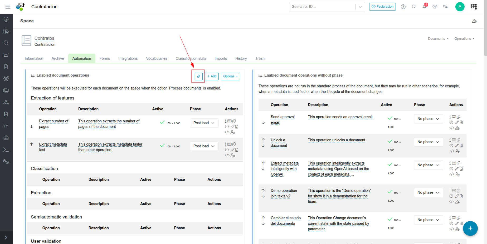 In the automation section of a space, you will see a button that will take you to the Athenea view with the context of the space.