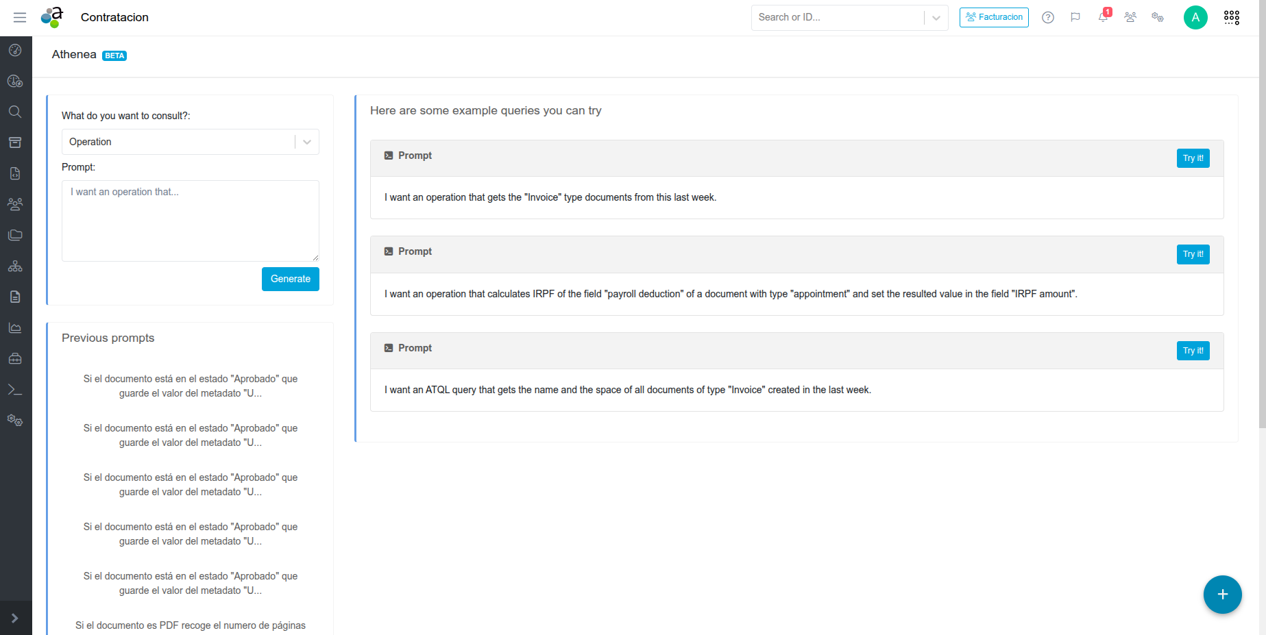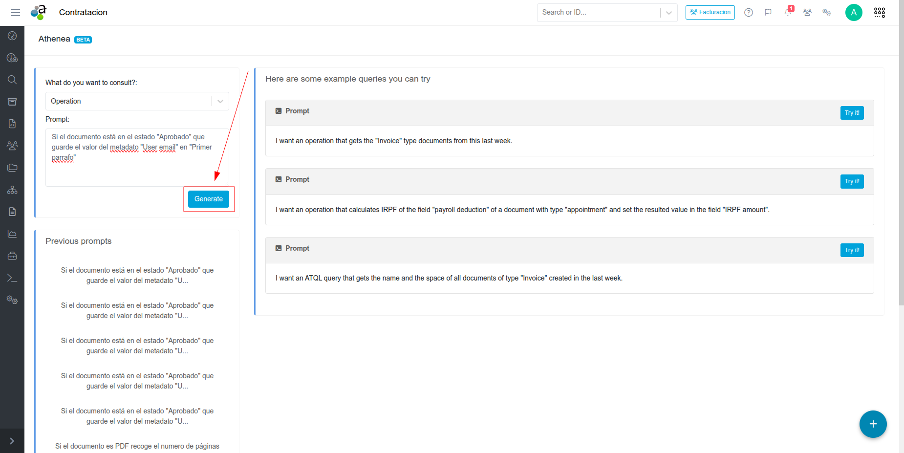 After specifying the message, if we click the “Generate” button, Athenea will generate an operation using the context of the space and the message entered.