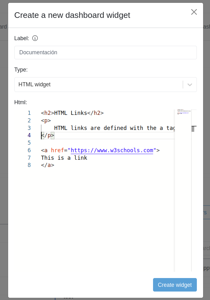 Athento allows adding an HTML widget to the new dashboards. These widgets are designed to enable dashboard customization, for example by adding links or informational content.