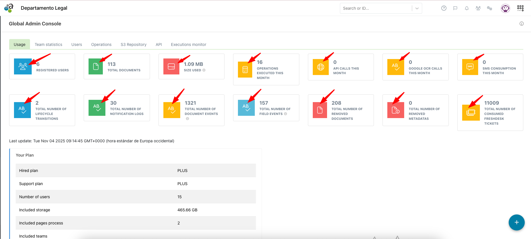 From the administration console, clicking on the icons for each statistics card will take you to a tab with a graph showing that statistic, allowing you to filter by other time periods and other statistics: