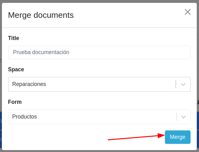 Una vez se hayan seleccionado, hay que hacer clic en el botón de "Merge" del clipboard. Esto abrirá un modal con los siguientes campos:
