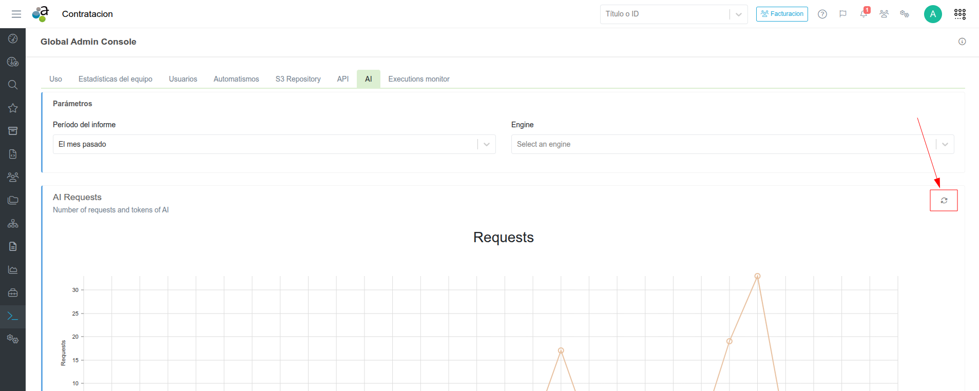 Estas estadísticas respecto a las peticiones y a los tokens se pueden ver en la consola de administración global en el apartado "AI".